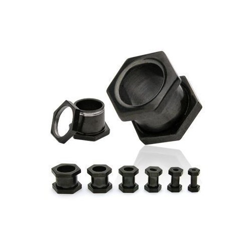 Ocelové šperky a piercing (16727) > Piercing (3900) > Tunely a plugy (305) > chirurgická ocel 316L (130) > Ocelový tunel do ucha černý - šestihran (10 mm)