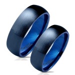 Snubní prsteny z chirurgické oceli se sametově matnou povrchovou úpravou. Snubní prsteny mají povrchovou úpravu v modré barvě.