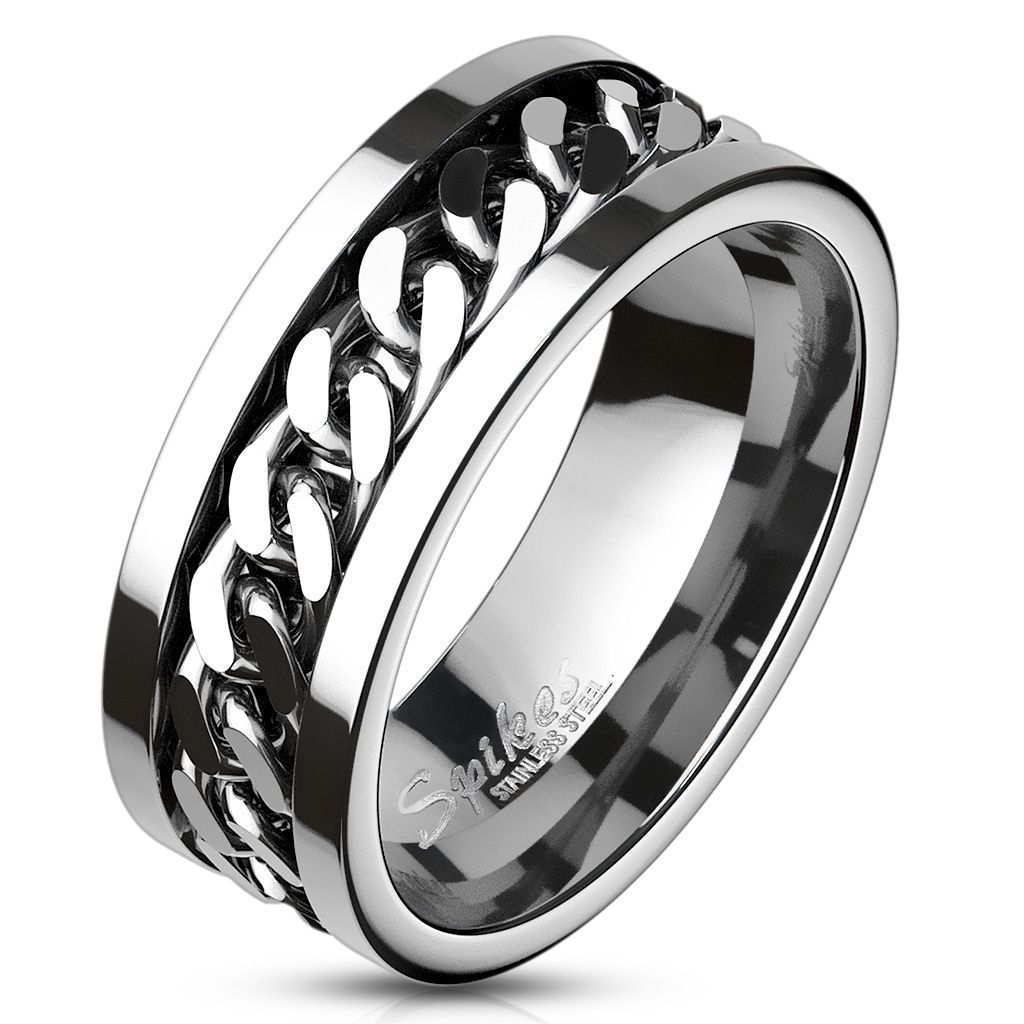 Ocelový prsten s rotačním prvkem v podobě dekorativního řetězu