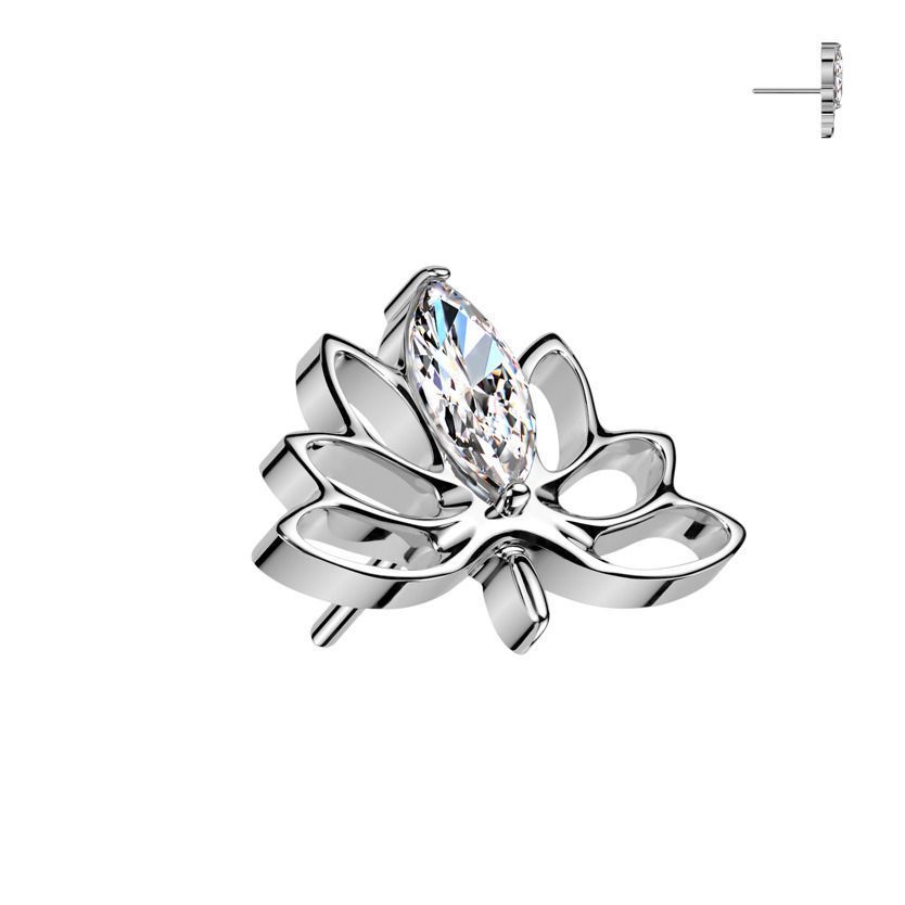 PUSH IN piercing - překrásně a velmi detailně zpracovaná náhradní ozdobná část ve tvaru lotosového květu dekorovaného zirkonem čiré barvy