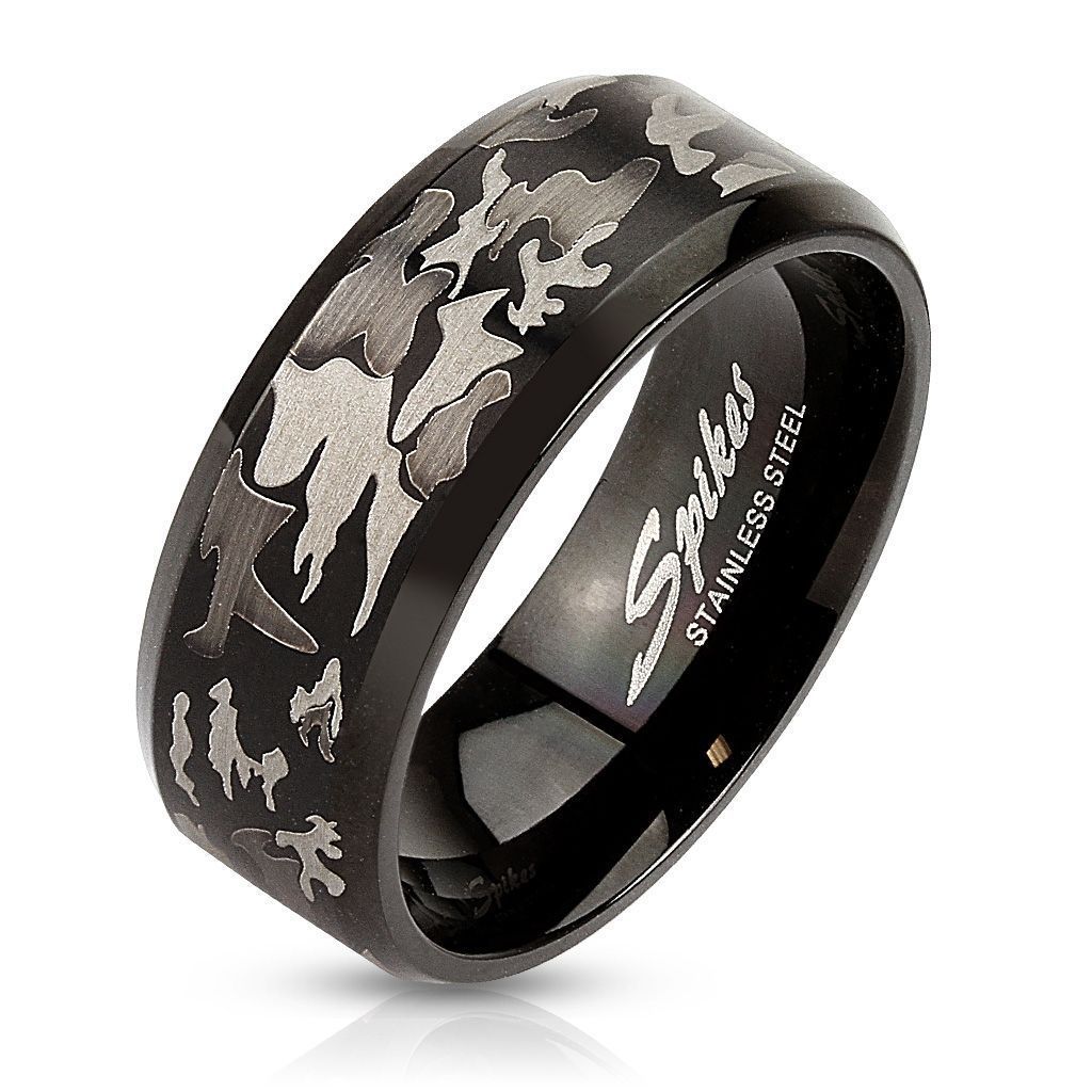Prsten z chirurgické oceli s černou povrchovou úpravou, zdobený maskáčovým dezénem.