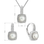 Ocelové šperky a piercing (16386) > Perlové šperky (105) > Perlové sety (1) > Perlová souprava s bílou říční perlou a zirkony čtverec 29084.1
