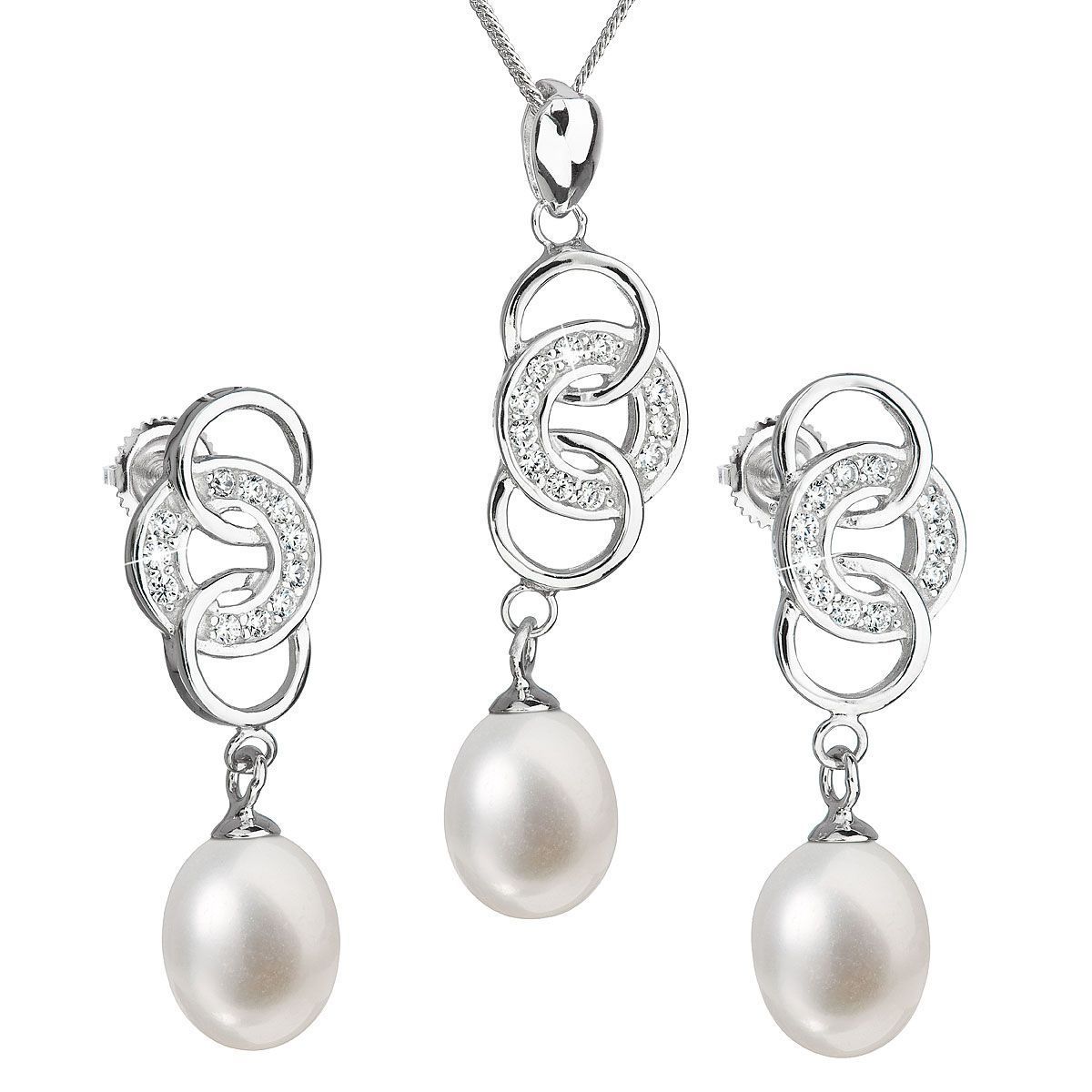 Ocelové šperky a piercing (14095) > Perlové šperky (81) > Perlové sety (1) > Perlová souprava z říčních perel bílá 29036.1