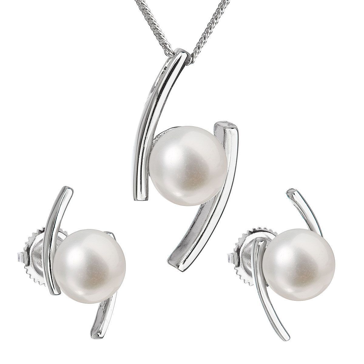 Souprava obsahující kulaté náušnice a náhrdelník s přívěškem zaujme svým originálním zpracováním v nezvyklém tvaru. Šperky jsou vyrobeny ze stříbra s rhodiovaným povrchem o ryzosti 925/1000 a jsou zdobeny kulatou sladkovodní perlou v bílé barvě. Luxusní perly spadají do kategorie nejvyšší kvality AAA. Soupravu mohou bez obav nosit i alergici, šperky jsou totiž bez přídavku niklu. Náušnice ze soupravy 29039.1 mají zapínání na balonek.