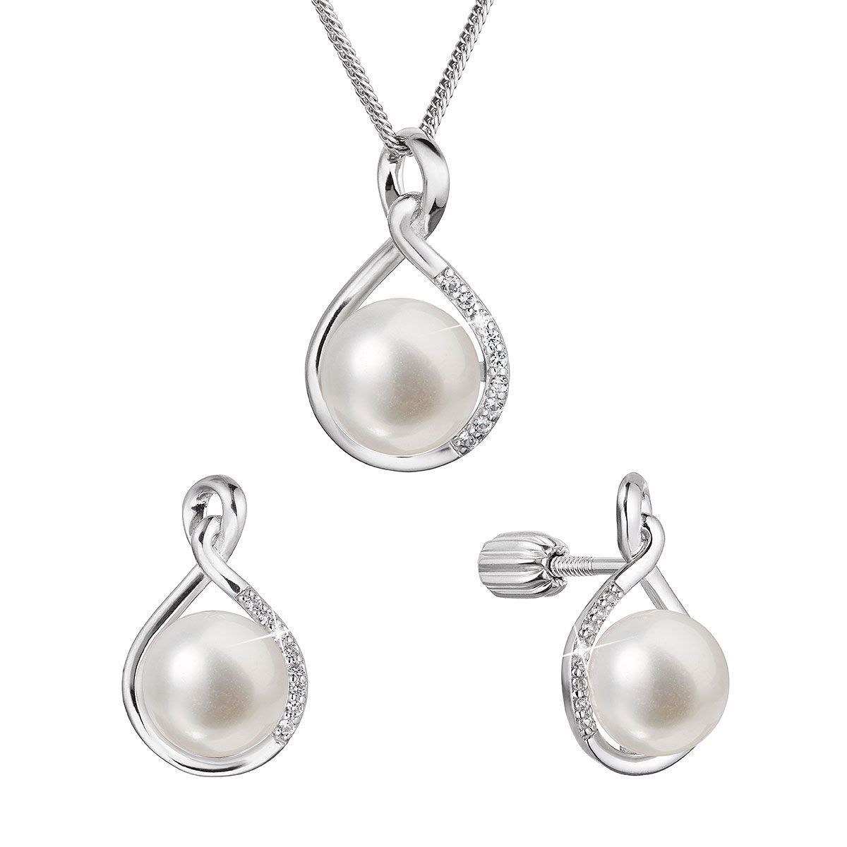 Ocelové šperky a piercing (17538) > Perlové šperky (101) > Perlové sety > Perlová souprava z říčních perel bílá 29058.1B