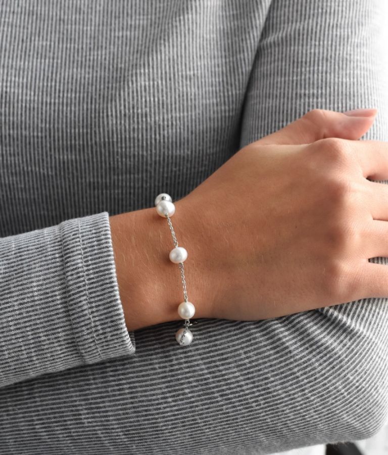 Náramek v délce 18 cm je vyroben ze stříbra o ryzosti 925/1000 včetně povrchové úpravy rhodiem a je po obvodu doplněn několika pravými říčními perlami v bílé barvě. Perly jsou téměř kulatého tvaru a spadají do kategorie kvality AA. Do náramku není přidán žádný nikl, a tak si jím bez obav mohou ozdobit ruku i alergici.