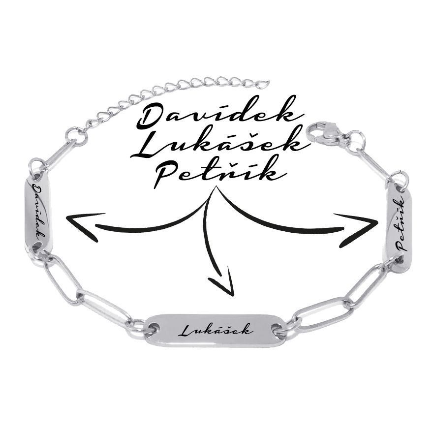 Personalizovaný ocelový náramek se třemi destičkami