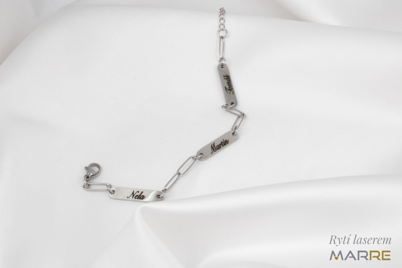 Ocelový náramek s destičkami pro gravírování