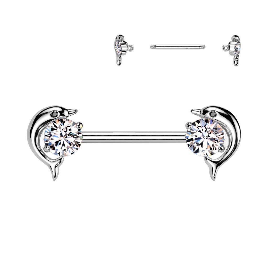 Ocelové šperky a piercing (20047) > Piercing (3915) > Piercing do bradavky (88) > Piercing do bradavky - delfíni (čirá)