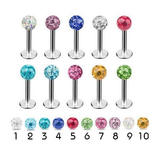 Kulička piercingu je osázena swarovski krystaly potaženými vrstvou bezbarvé pryskyřice, která chrání kamínky proti jejich vypadnutí
