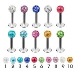 Kulička piercingu je osázena swarovski krystaly potaženými vrstvou bezbarvé pryskyřice, která chrání kamínky proti jejich vypadnutí