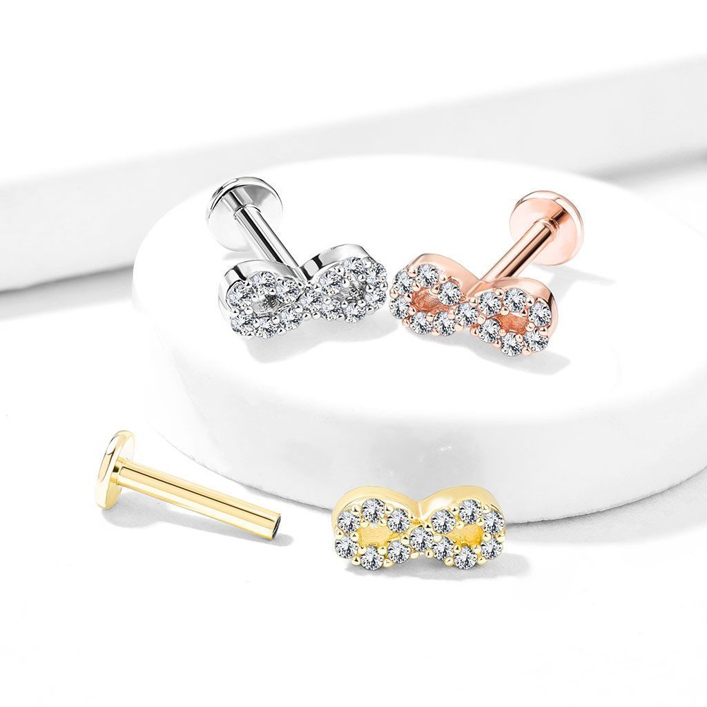 Piercing do brady - ležatá osmička 1,2 x 8 mm (žluté zlato)