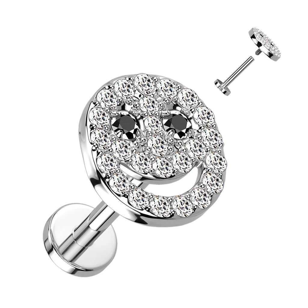 Piercing do brady s ozdobou ve tvaru smajlíka se zirkony.