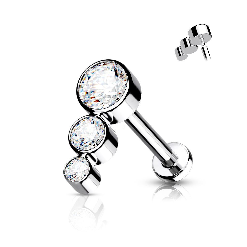 Titanový piercing do brady s ozdobou zdobenou čirými zirkony.