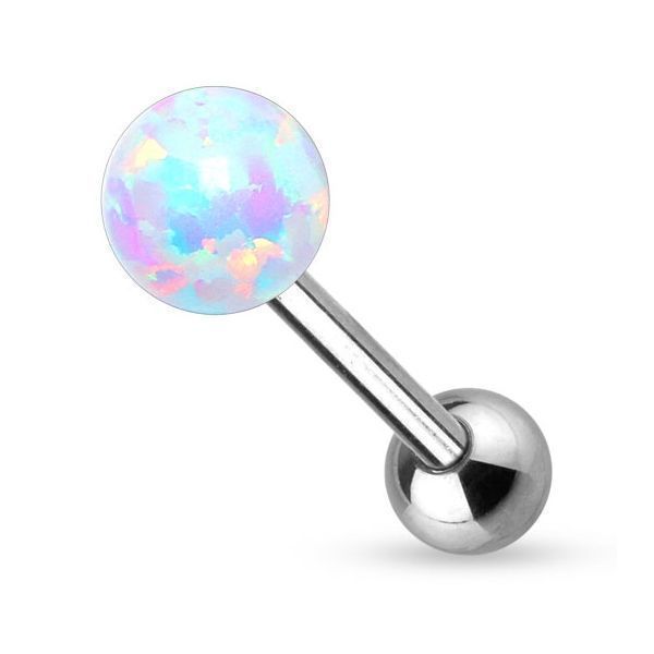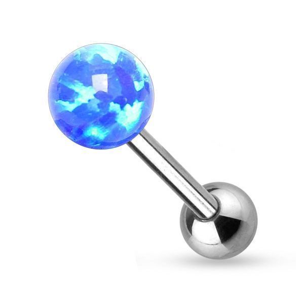 Piercing činka do jazyku z chirurgické oceli, kulička z opálu.