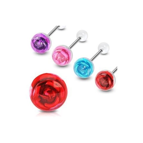 Ocelové šperky a piercing (20269) > Piercing (3897) > Piercing do jazyka (171) > Piercing do jazyka - růže (tyrkysová)