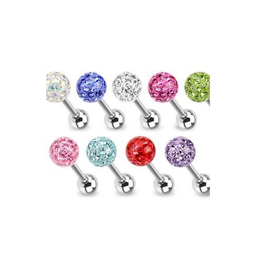 Kulička piercingu je osázena swarovski krystaly potaženými vrstvou bezbarvé pryskyřice, která chrání kamínky proti jejich vypadnutí
