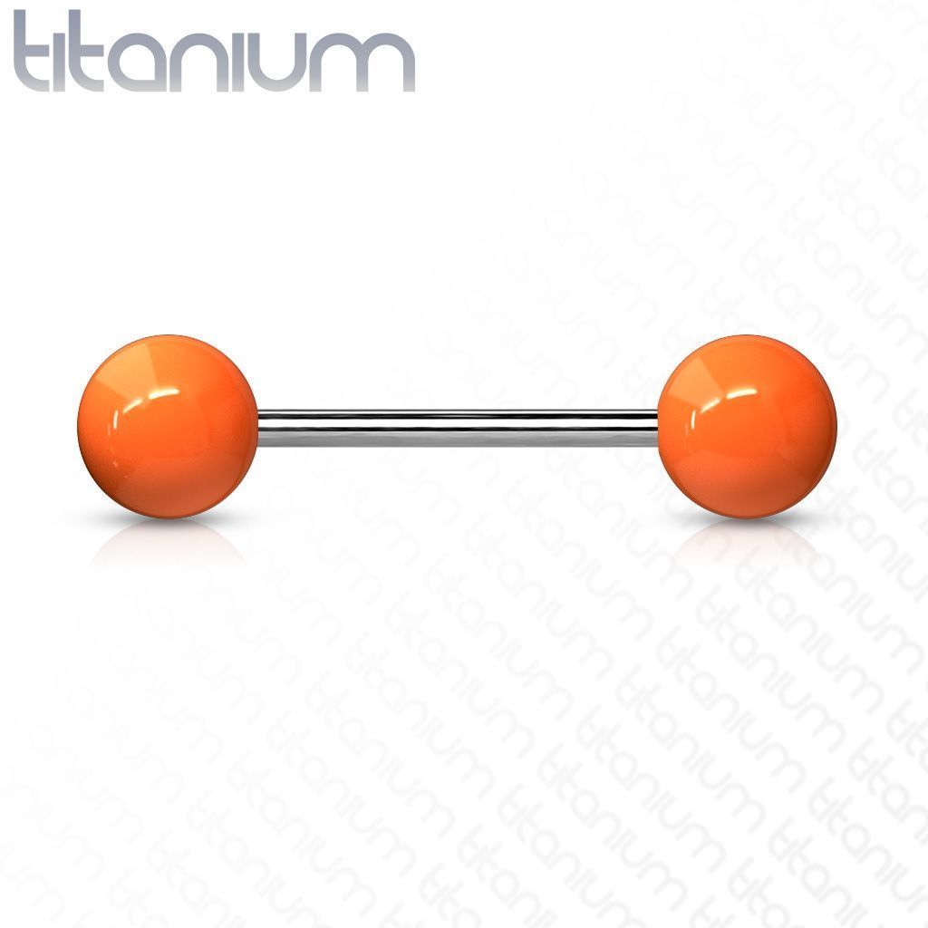 Titanový piercing do jazyka s akrylátovými kuličkami.