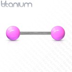 Titanový piercing do jazyka s akrylátovými kuličkami.