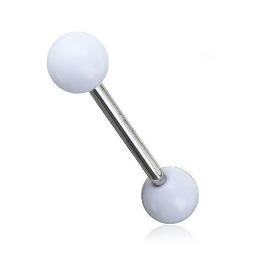 Piercing činka do jazyku. Průhledné akrylátové kuličky vyniknou pod UV světlem.