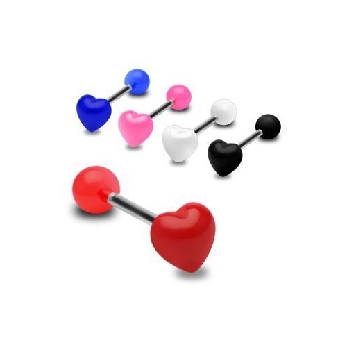 Piercing činka do jazyku s akrylátovou kuličkou a srdcem.