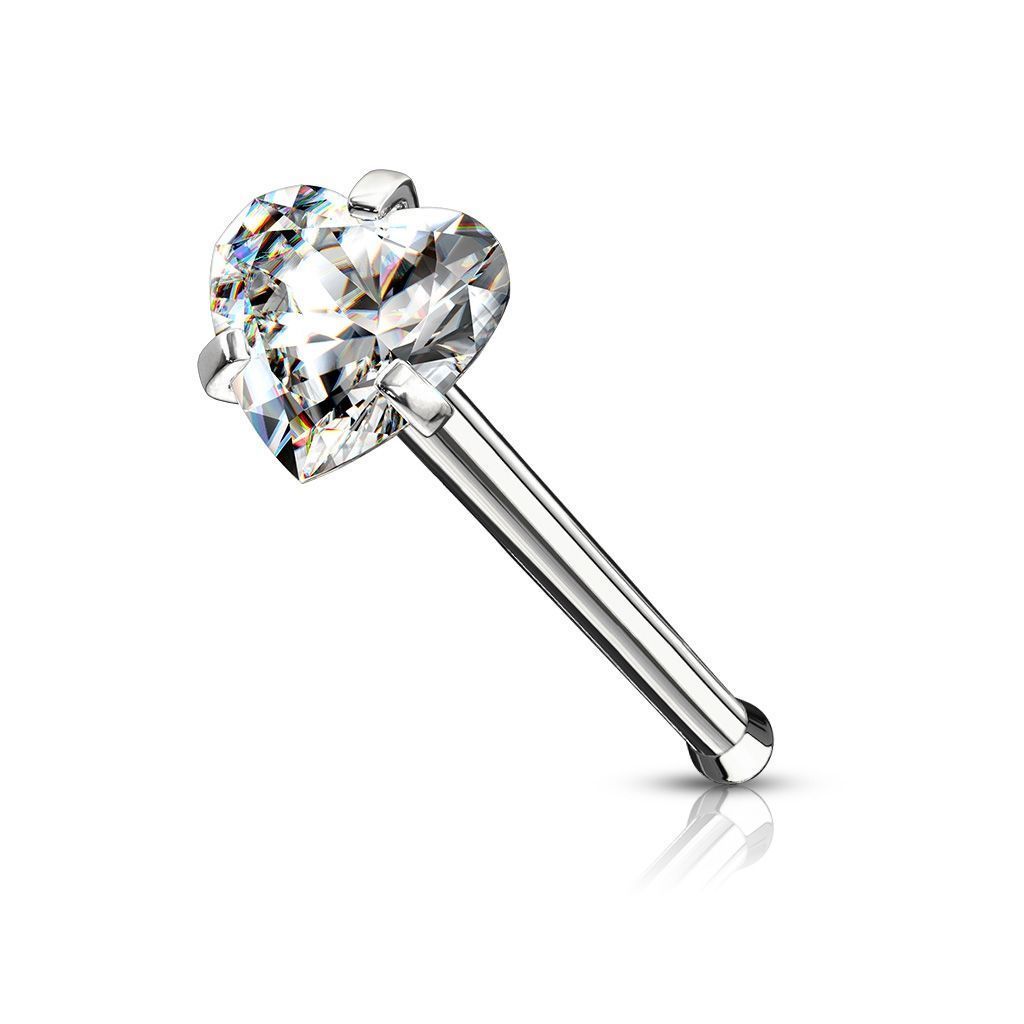 Piercing nosovka - piercing do nosu. Rovný piercing do nosu se zirkonem ve tvaru srdíčka.