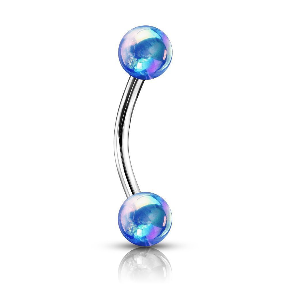 Piercing do obočí z chirurgické oceli, obočovka s duhovými kuličkami.