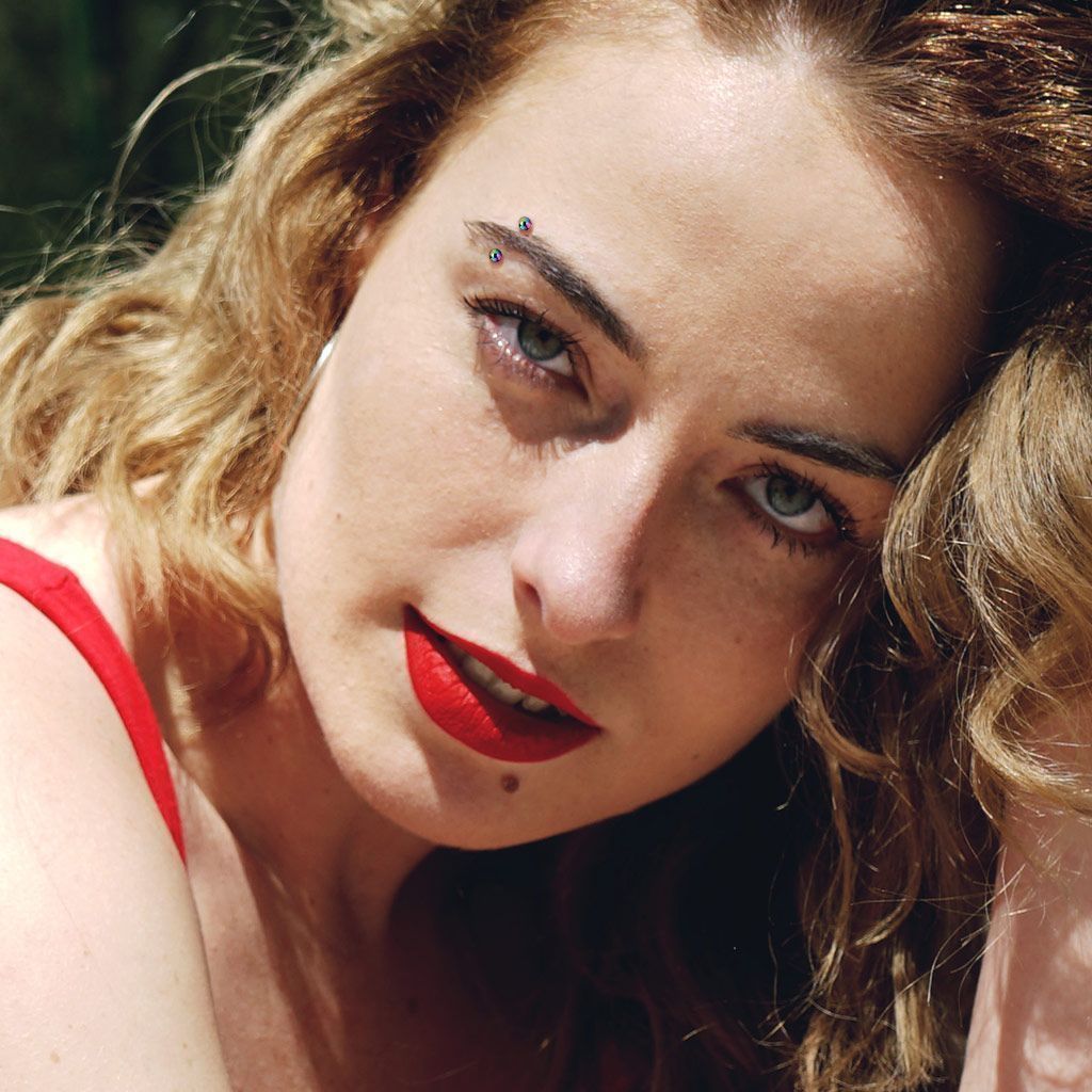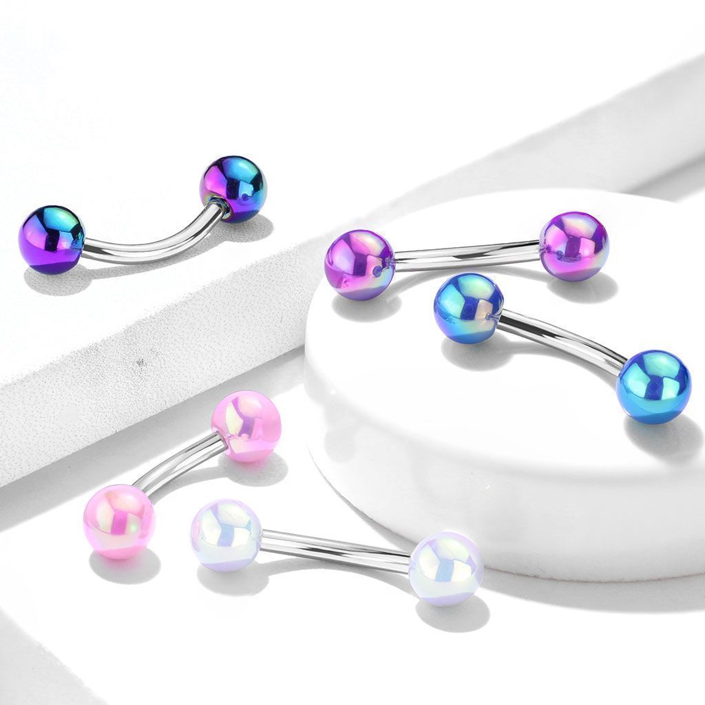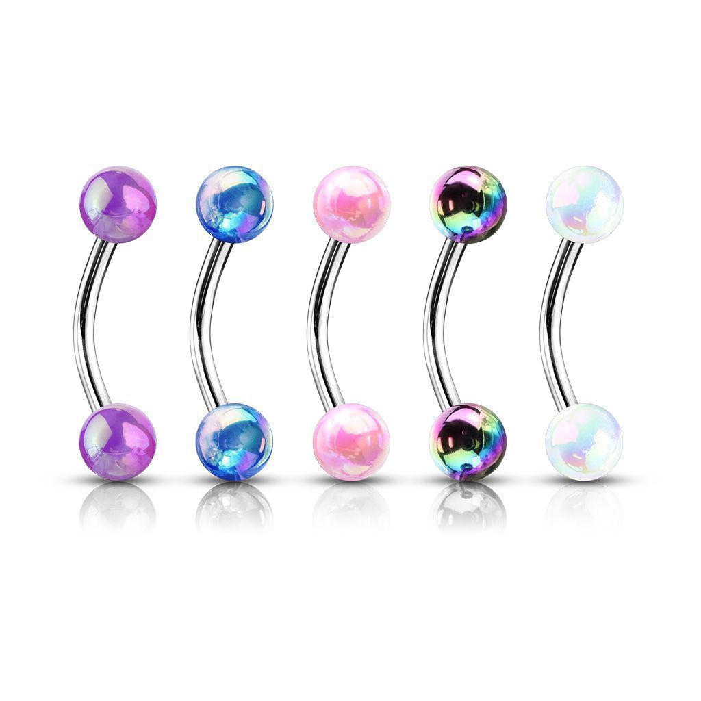 Piercing do obočí z chirurgické oceli, obočovka s duhovými kuličkami.