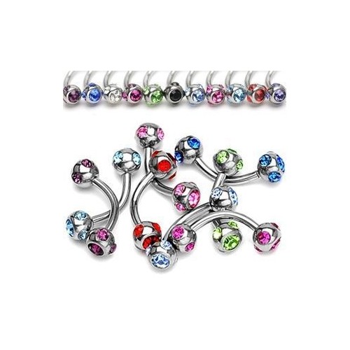 Piercing do obočí s kuličkami osázenými zirkony.