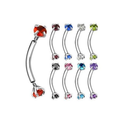 Piercing do obočí s vnitřním závitem zdobený zirkony.
