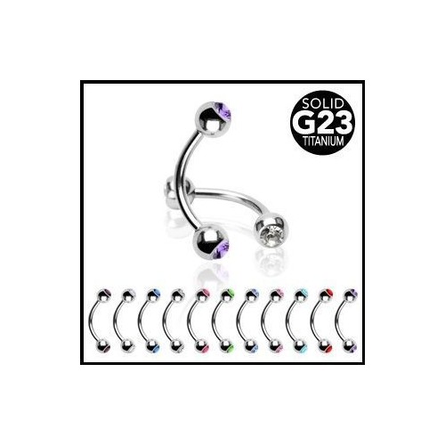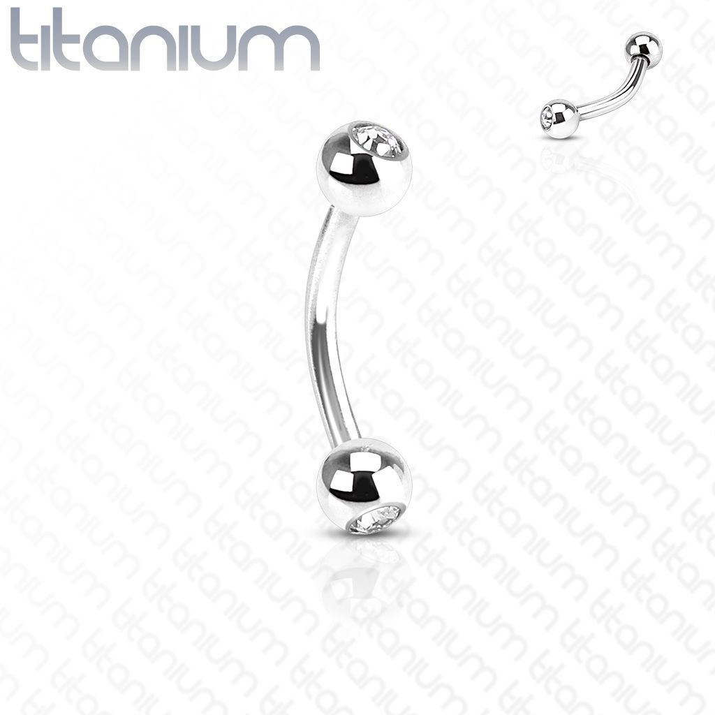 Titanový piercing banánek do obočí. Piercing banánek s kuličkami osazenými čirým zirkonem.