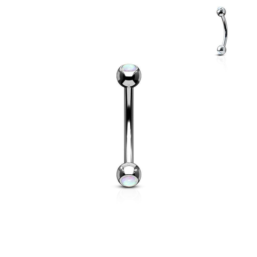 Piercing do obočí zdobený syntetickým opálem.