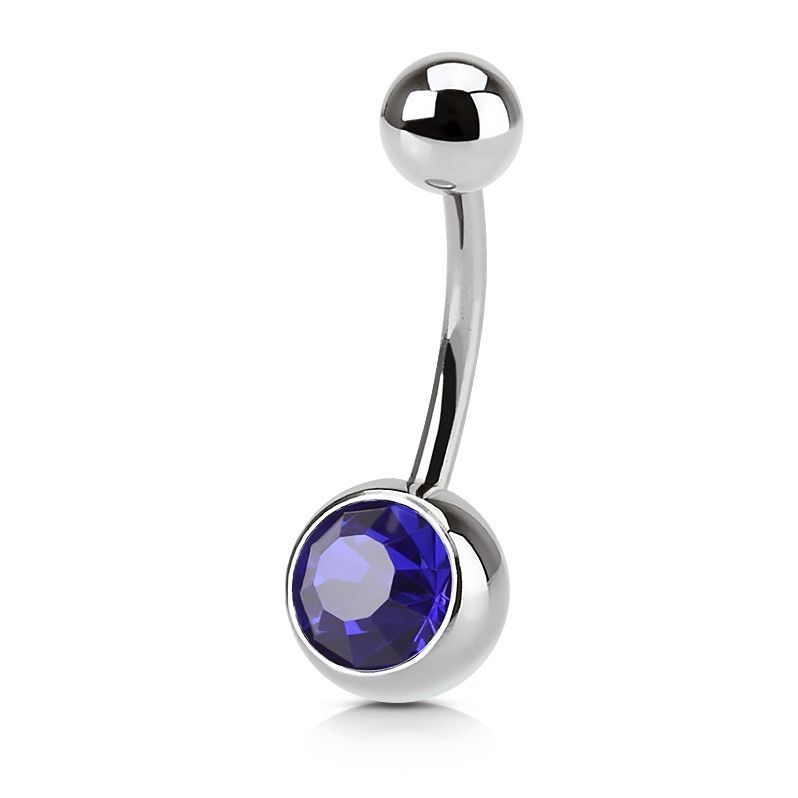Piercing vyroben z chirurgické oceli. Velká kulička osazena zirkonem.
