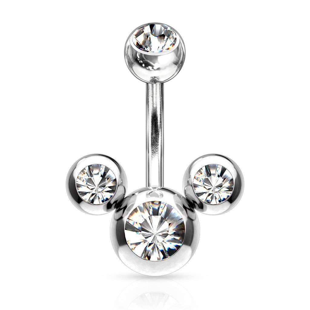 Piercing banánek do pupíku. Spodní kulička připomíná hlavu mickey mouse.