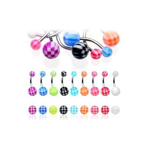 Piercing banánek do pupíku, chirurgická ocel s UV kuličkami, které vyniknou pod UV světlem.