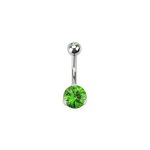 Piercingový šperk určený pro piercing pupíku. S velkým spodním zirkonem a malým zirkonem zasazeným v horní kuličce.