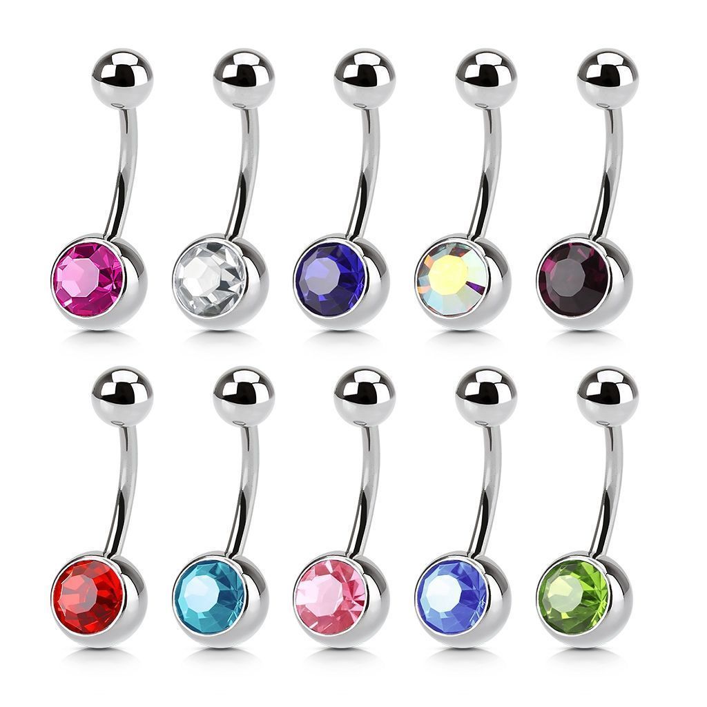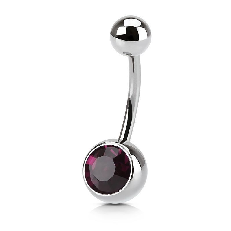 Piercing vyroben z chirurgické oceli. Velká kulička osazena zirkonem.