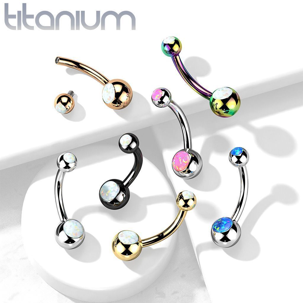 Titanový piercing do pupíku dekorovaný dvěma syntetickými opály.