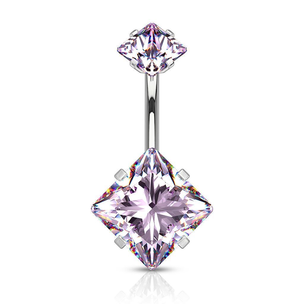 Piercingový šperk určený pro piercing pupíku. S ozdobou velkého broušeného kamene ve tvaru čtverce (kosočtverce).