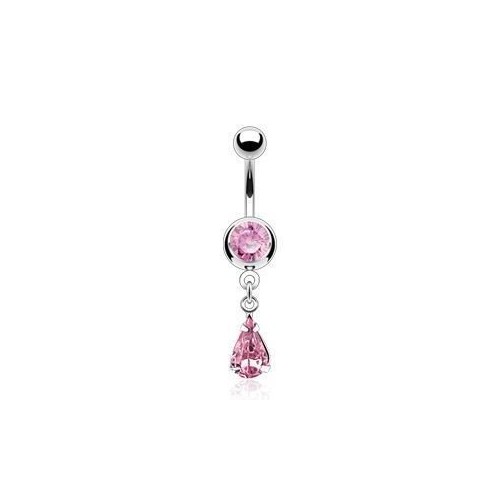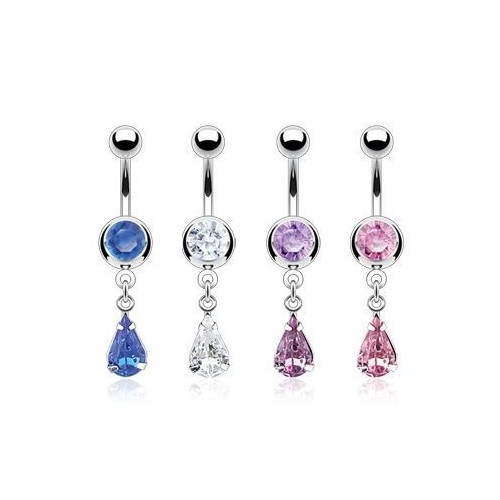 Visací piercing do pupíku s ozdobou ve tvaru kapičky.