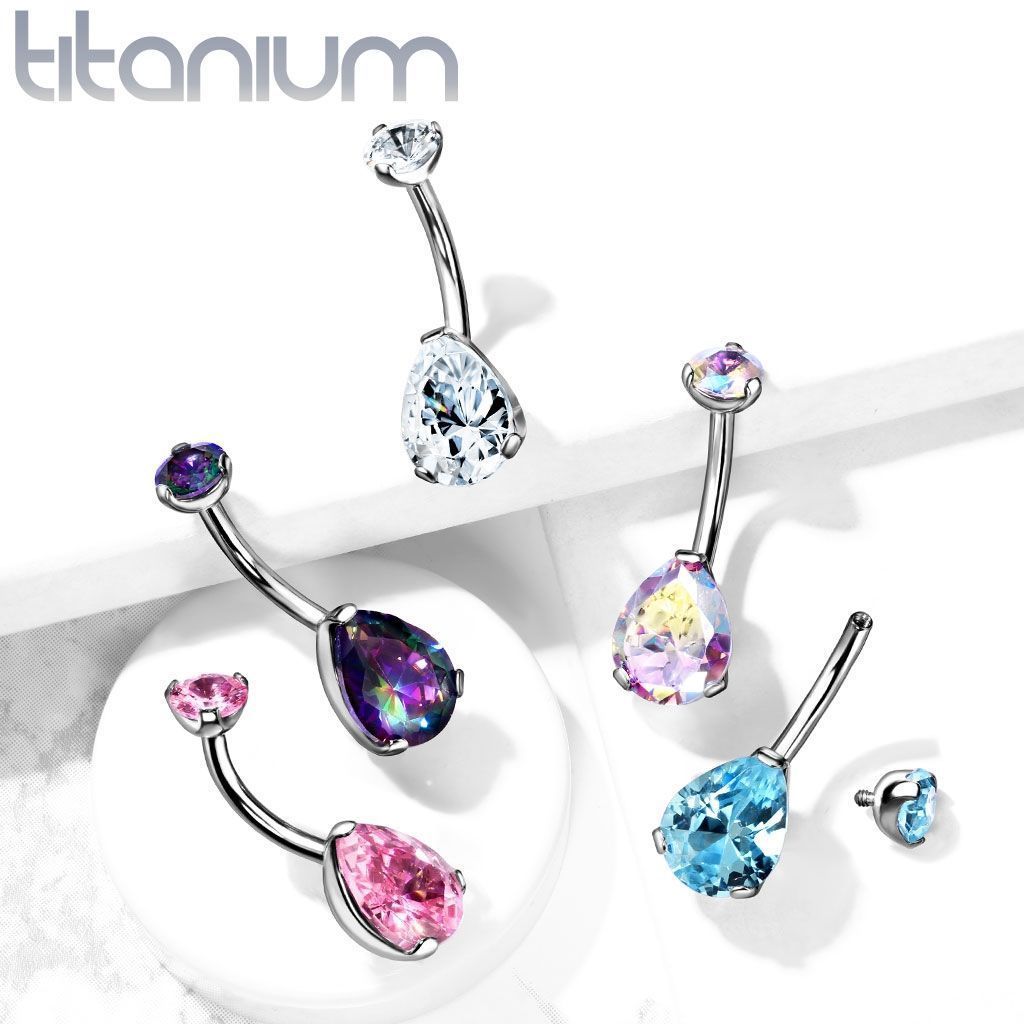 Piercing do pupíku z titanu G23 zdobený zirkony. Kapka.