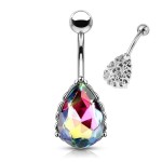 Piercingový šperk určený pro piercing pupíku. S ozdobou ve tvaru kapky s broušeným zirkonem.