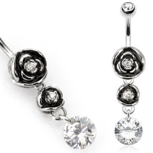 Piercing banánek do pupíku - kytička osazená zirkonem.