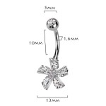 Piercing banánek do pupíku s ozdobou květu. Zdobený čirými zirkony.