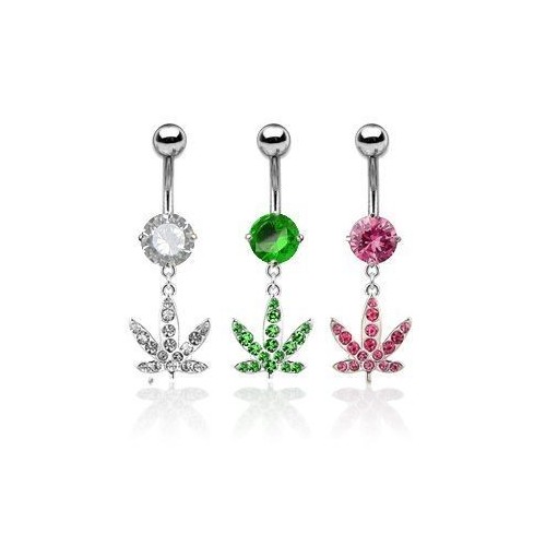 Ocelové šperky a piercing (19965) > Piercing (3909) > Piercing do pupíku (1004) > ocel 316L a bižuterie (524) > Piercing do pupíku - list marihuany (růžová)