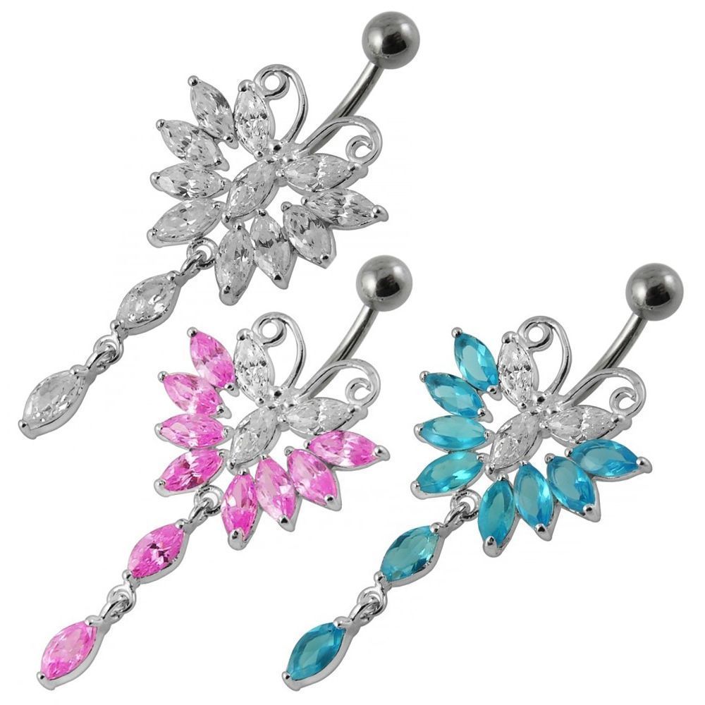 Piercingový šperk určený pro piercing pupíku. S ozdobou motýla.