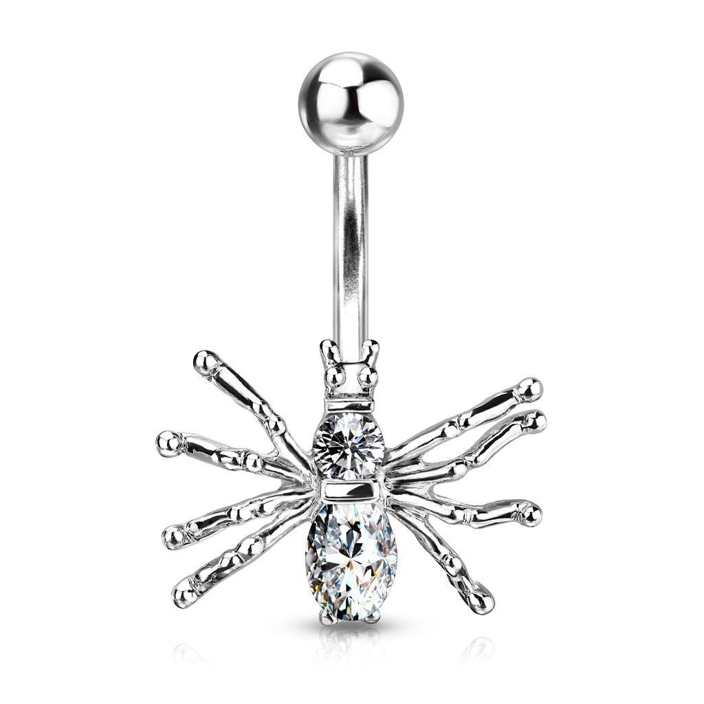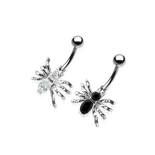 Piercingový šperk určený pro piercing pupíku. S ozdobou pavoučka z kvalitní bižuterie.