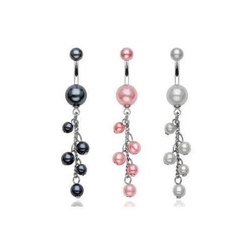 Piercing do pupíku s perličkovými akrylátovými kuličkami a visací ozdobou.