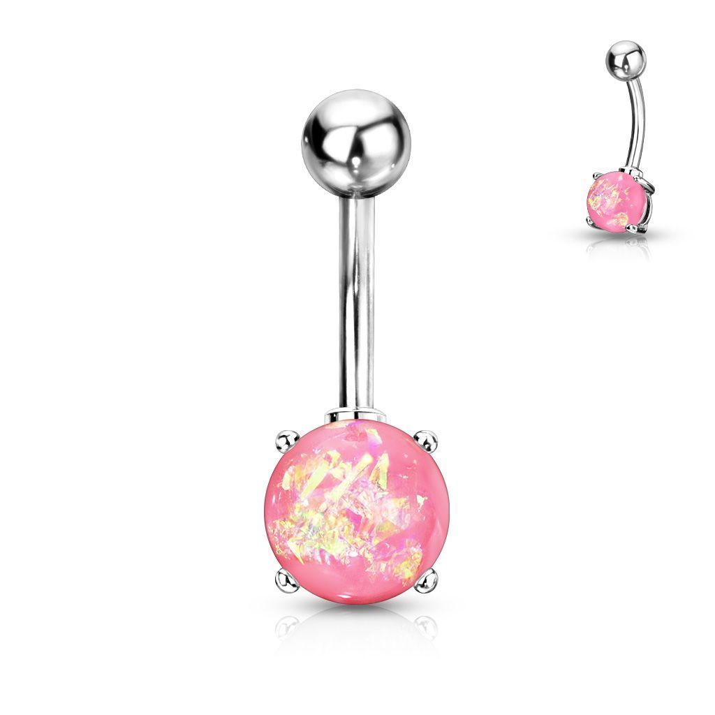 Piercingový šperk určený pro piercing pupíku. S kuličkou osazenou syntetickým opálem.