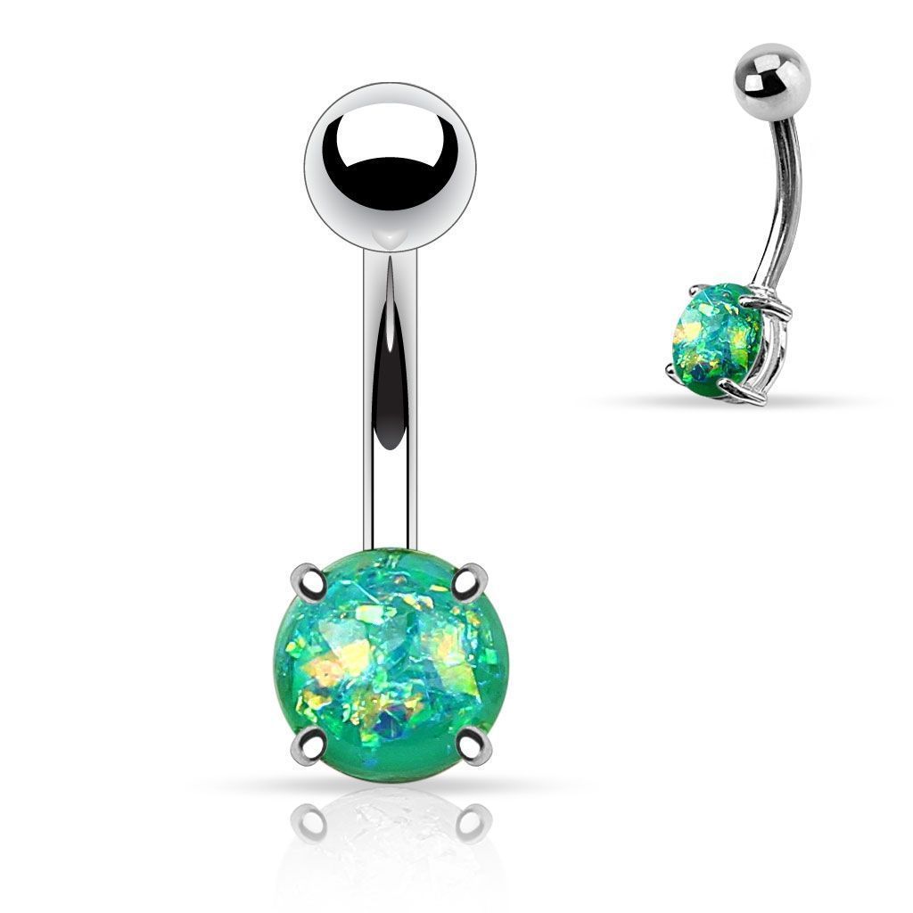 Piercingový šperk určený pro piercing pupíku. S kuličkou osazenou syntetickým opálem.